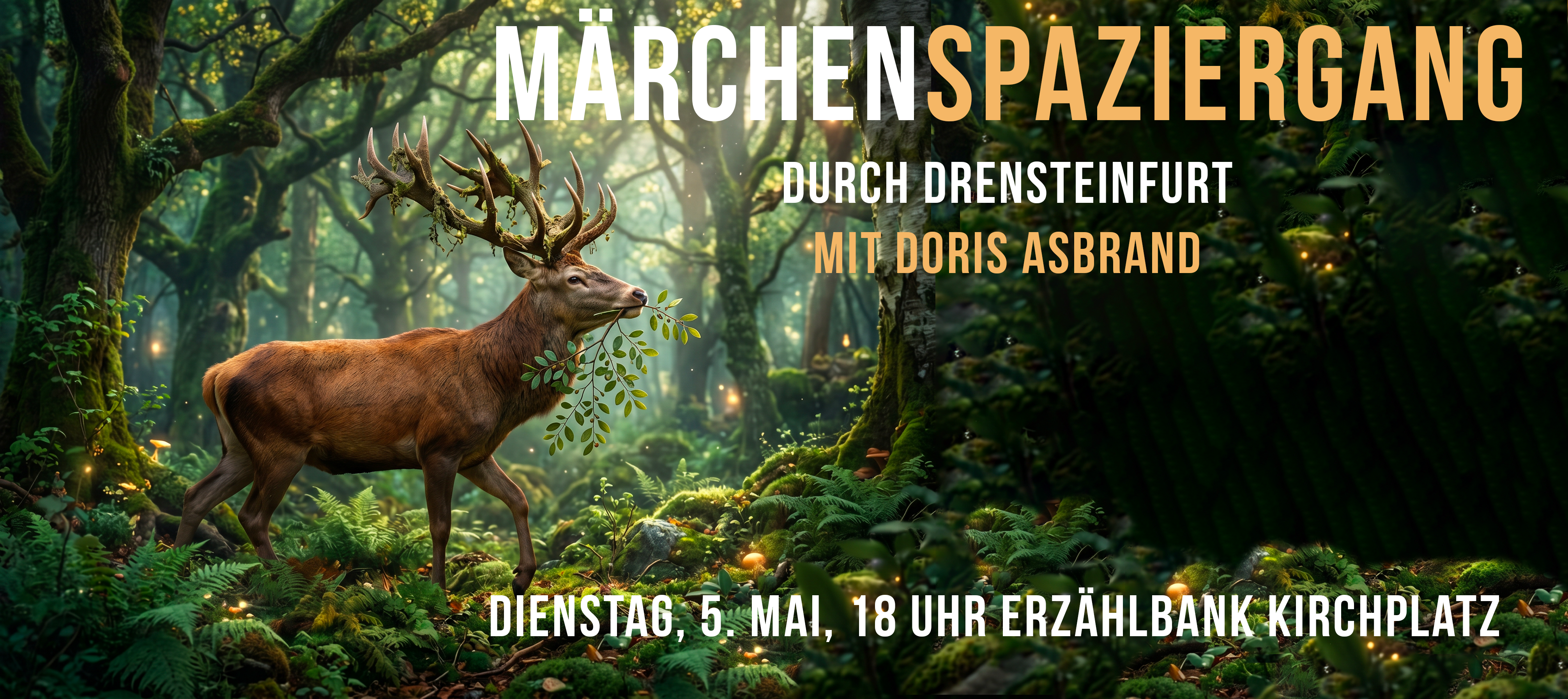 Dienstag, 05.05. - 18:00 Uhr Erzählbank Kirchplatz Märchenspaziergang zu den einzelnen Stationen mit Doris Asbrand