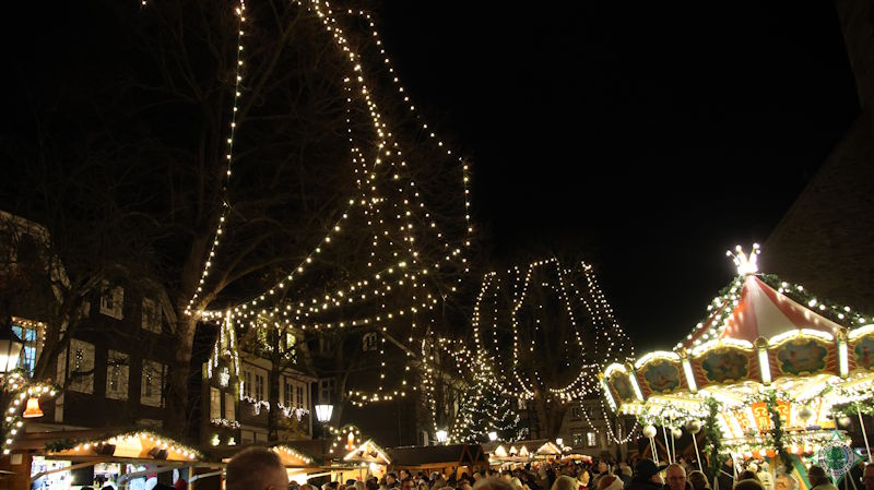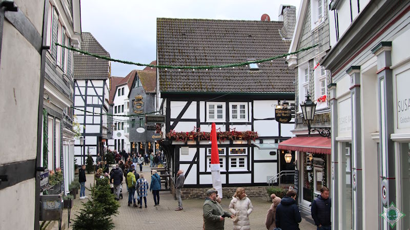 Der nostalgische Weihnachtsmarkt auf dem Kirchplatz der mittelalterlichen Stadt Hattingen, umgeben von der St. Georgs-Kirche mit ihrem schiefen Turm, bot eine einzigartige Stimmung. Neben Ständen mit Handwerkskunst, der Ausstellung „Feuer und Wasser“, kulinarischen Genüssen und Geschenkideen ließen die Besucher das Altstadtflair mit verwinkelten Gassen und Fachwerkhäusern auf sich wirken. Ein zentraler Anziehungspunkt für alle Generationen ist der lebendige Adventskalender am Alten Rathaus. Da der 1. Dezember auf einen Montag fiel, begann Frau Holles Treiben an diesem ersten Adventssonntag noch nicht. Bei einsetzender Dunkelheit erleuchtet der nostalgische Markt im festlichen Lichterglanz der Vorweihnachtszeit.