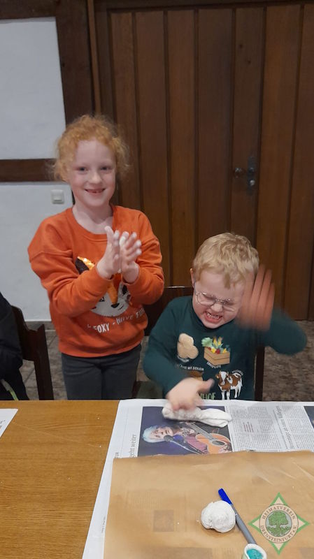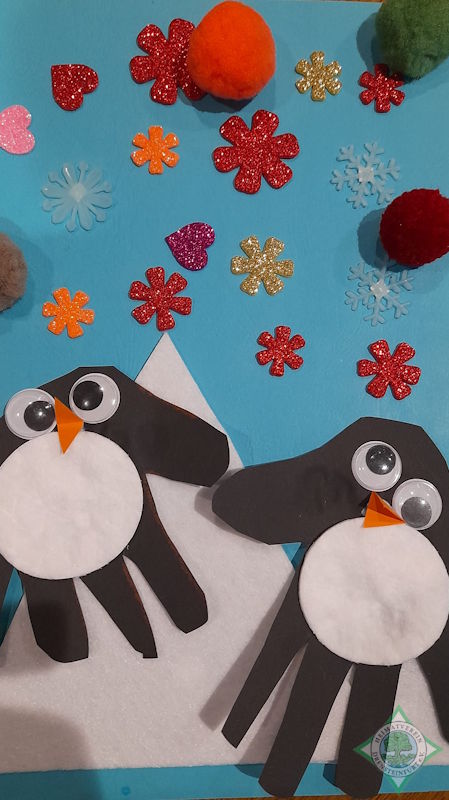 In der Gruppenstunde am 16.1.2026 fand eine Bastelaktivität statt. Aus Tonpapier entstanden Pinguine von Handabdrücken. Zusätzlich wurden Figuren und Schleifen aus Modelliermasse gefertigt. Alle Kids waren mit Freude dabei.