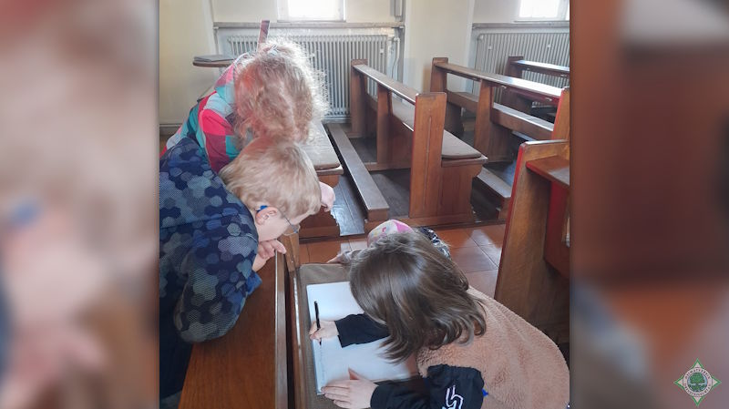 Am 27.02.2026 besuchten die "Regenbogen Kids" in ihrer Gruppenstunde die Lichterkapelle (Herz-Jesus) in Borbein. Die Küsterin gestaltete eine altersgerechte Führung, die auch Bereiche wie die Sakristei und die Empore mit der Orgel umfasste. Die Kinder zeigten sich begeistert und folgten den Ausführungen mit großem Interesse. Abschließend trugen sich alle Teilnehmer in das Gästebuch der Kapelle ein.