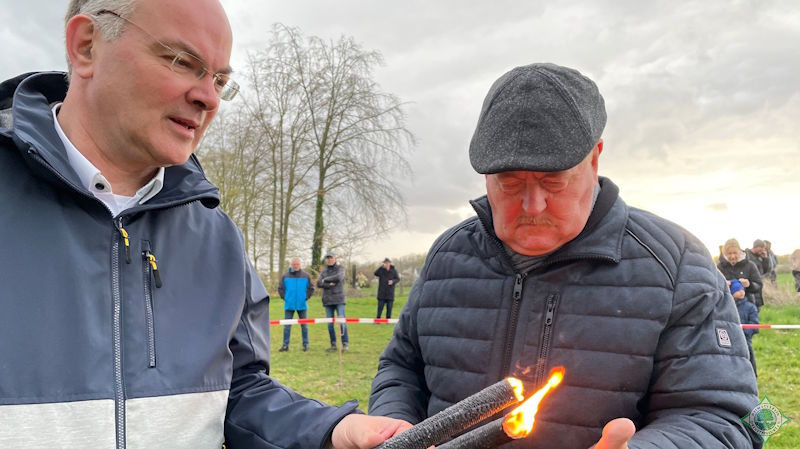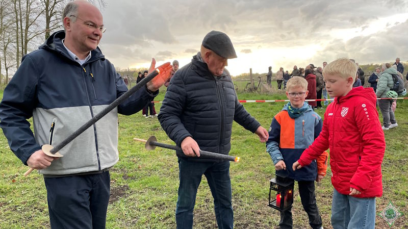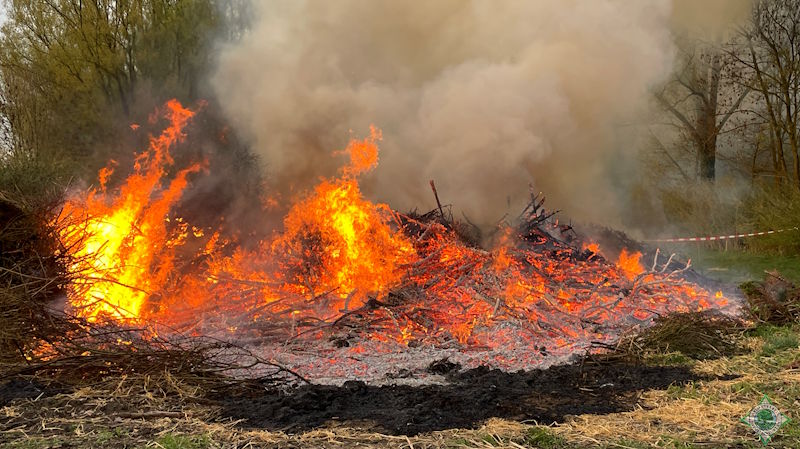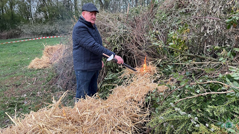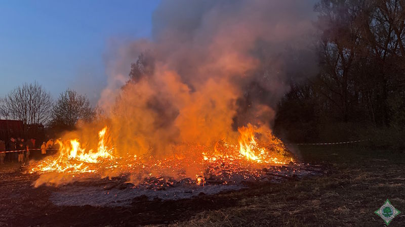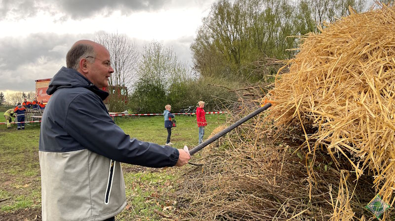 Auch die Jugendfeuerwehr war vor Ort. Sie verkaufte Würstchen und Getränke. Bereits bei der Baumsammelaktion hatten sie die Bäume auf die Wiese am Rosenweg gebracht. Die große Beteiligung der Feuerwehr „muss auch lobend erwähnt werden“, wie Doris Matuszewski vom Heimatverein anmerkte. Damit keine Tiere im Feuer umkommen, wurden die Bäume vor dem Feuer noch einmal umgeschichtet.