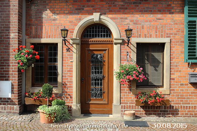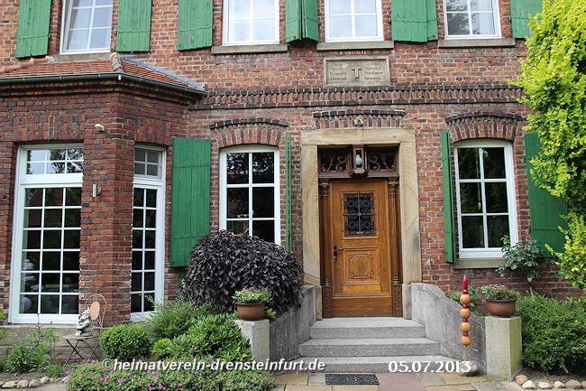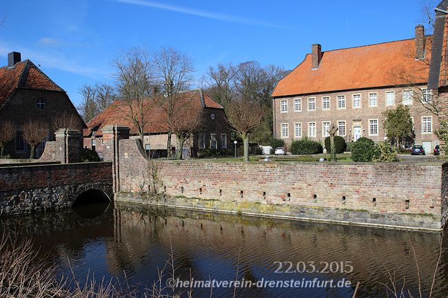 Der erste Siedlungskern war ein Oberhof, der Wittekind zugeschrieben wird. Seine Nachfolger übertrugen dieses Rittergut dem Osnabrücker Fürstbischof, der es anschließend an verschiedene Adelsfamilien verlehnte. Zum Schutz in Kriegszeiten wurde das Wigbold Drensteinfurt – eine damalige Bezeichnung für einen Ort mit eingeschränkten Stadtrechten – ab dem 15. Jahrhundert mit Wallanlagen und Gräben gesichert. Im heutigen Stadtbild ist dieser Befestigungsring weiterhin klar von neueren Siedlungsflächen zu unterscheiden. Zahlreiche Straßennamen erinnern noch an die historischen Wälle und Tore. (Aus dem Oberhof entstand das Rittergut, das heutige Haus Steinfurt.)