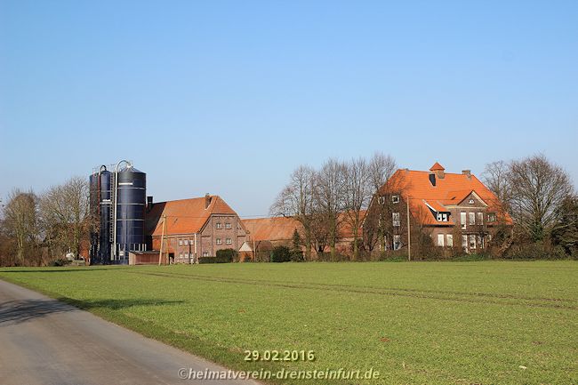Der Gutshof Steinfurt befand sich in der Freiheit. Er entstand neben dem Rittersitz Steinfurt. Ihm waren 17 Unterhöfe zugeordnet, welche gemeinsam die Freiheit Drensteinfurt bildeten. Die Eigentümer des Hauses Steinfurt genossen in diesem Bereich der Freiheit verschiedene landesherrliche Rechte und Privilegien. Das Gebiet der Freiheit Drensteinfurt wurde durch sogenannte vier Pfähle begrenzt.