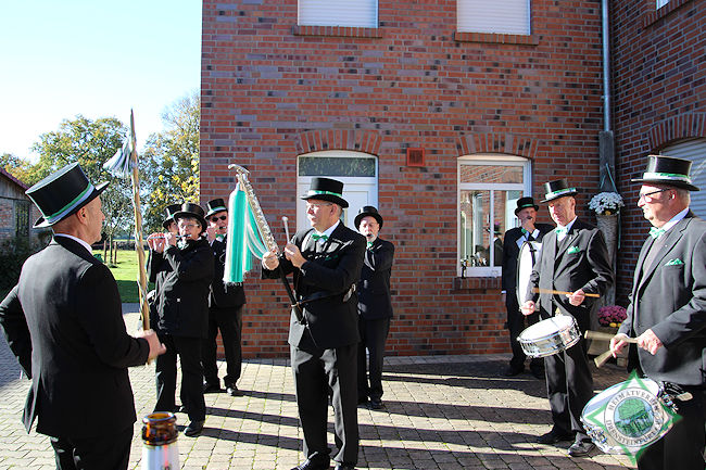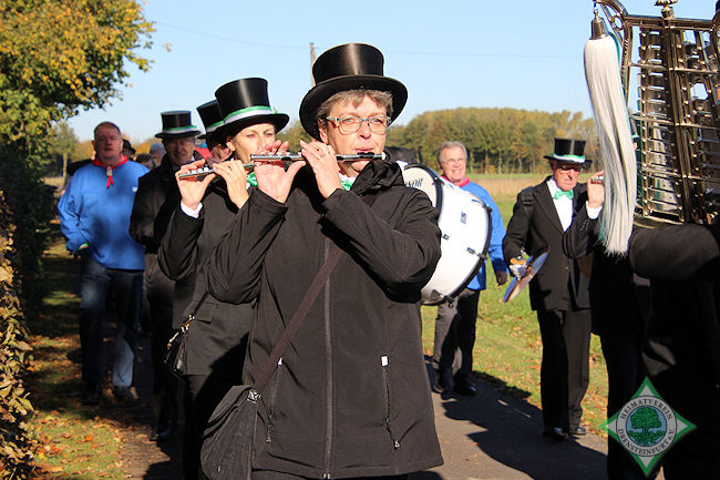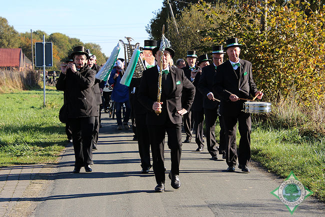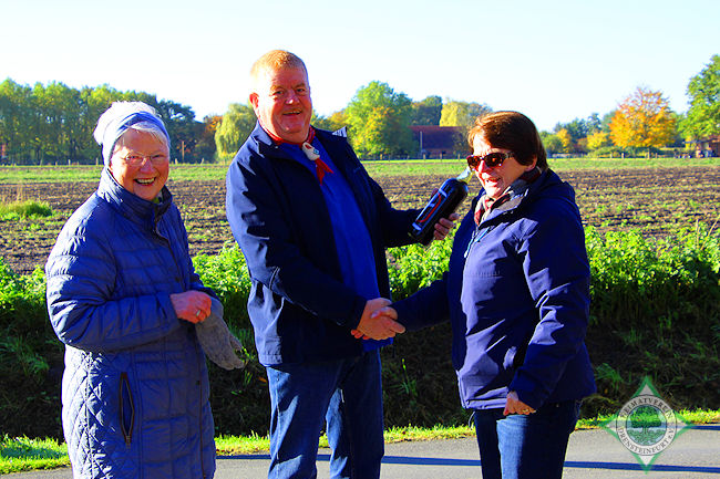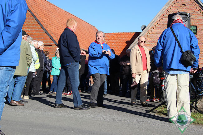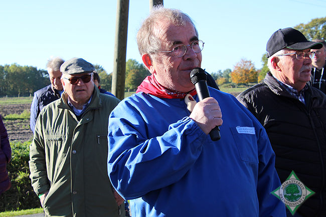 Rund 130 Drensteinfurter waren am Sonntagvormittag zum Hof Waldmann gekommen, um gemeinsam mit den Heimatfreunden den Schnadegang zu gehen. Angeführt von der Rentnerband, machten sich die Heimatfreunde und ihre Gäste bei herrlichstem Wetter auf den Weg zum Hof Brüse/Gunnemann. Hier, an der Grenze zwischen Herbern und Drensteinfurt, steht der neue, rund 400Kilogramm schwere Grenzstein, fest im Boden verankert mit einer einbetonierten, 80 Zentimeter langen Eisenstange. Bevor der Stein enthüllt wurde, gab es eine kleine musikalische Begrüßung durch die Jagdhornbläser. „Wir befinden uns hier an einer historischen Stelle“, informierte der Vorsitzend Franz-Josef Naber und verwies nicht nur auf die Stadtgrenze, sondern auch auf die Kreisgrenze zwischen Warendorf und Coesfeld und den Jakobsweg von Osnabrück nach Lünen. „Wir haben diese Stelle bewusst ausgesucht und sind der Familie Brüse/Gunnemann dankbar, dass wir den Stein hier aufstellen durften.“ Holger Martsch informierte ausführlich über die Tradition des Schnadegangs, des „Paoläsen“, und des Vermessungswesens. Bürgermeister Carsten Grawunder bedankte sich beim Heimatverein, der mit dem Schnadegang dazu beitrage, die Geschichte lebendig zu halten. „Ich hoffe, ihr habt nicht so dünne Stöckchen dabei, mit der Diät hat das nicht so geklappt“, witzelte er, mit Blick auf das Paoläsen.