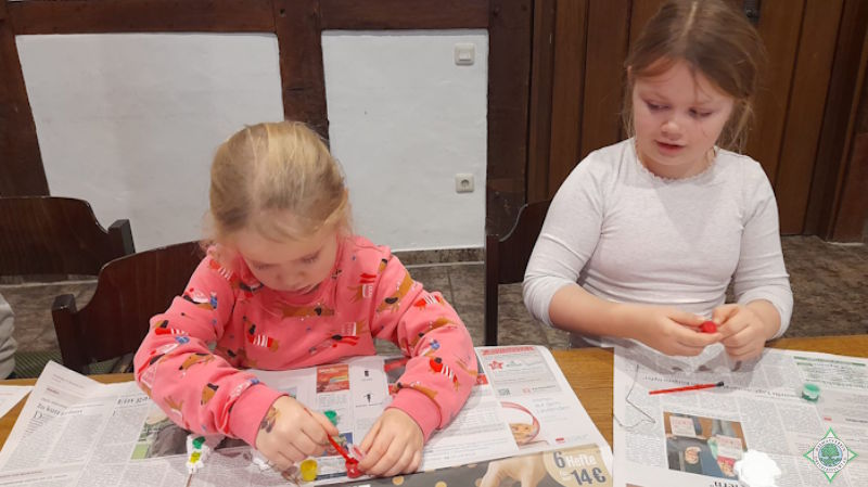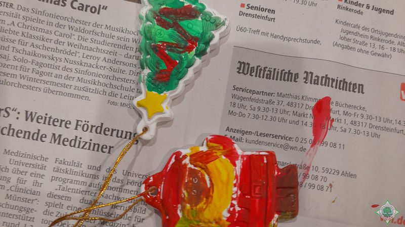 In der letzten Gruppenstunde der "Regenbogen Kids" am 19.12.2025 wurden Tannenbaumanhänger aus Gips kunstvoll gestaltet und ein Weihnachtsquiz absolviert. Anschließend fand im Freien eine Spielerunde "Fangen" statt.