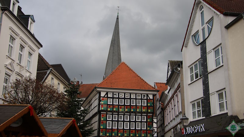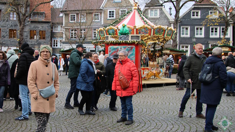 Der nostalgische Weihnachtsmarkt auf dem Kirchplatz der mittelalterlichen Stadt Hattingen, umgeben von der St. Georgs-Kirche mit ihrem schiefen Turm, bot eine einzigartige Stimmung. Neben Ständen mit Handwerkskunst, der Ausstellung „Feuer und Wasser“, kulinarischen Genüssen und Geschenkideen ließen die Besucher das Altstadtflair mit verwinkelten Gassen und Fachwerkhäusern auf sich wirken. Ein zentraler Anziehungspunkt für alle Generationen ist der lebendige Adventskalender am Alten Rathaus. Da der 1. Dezember auf einen Montag fiel, begann Frau Holles Treiben an diesem ersten Adventssonntag noch nicht. Bei einsetzender Dunkelheit erleuchtet der nostalgische Markt im festlichen Lichterglanz der Vorweihnachtszeit.