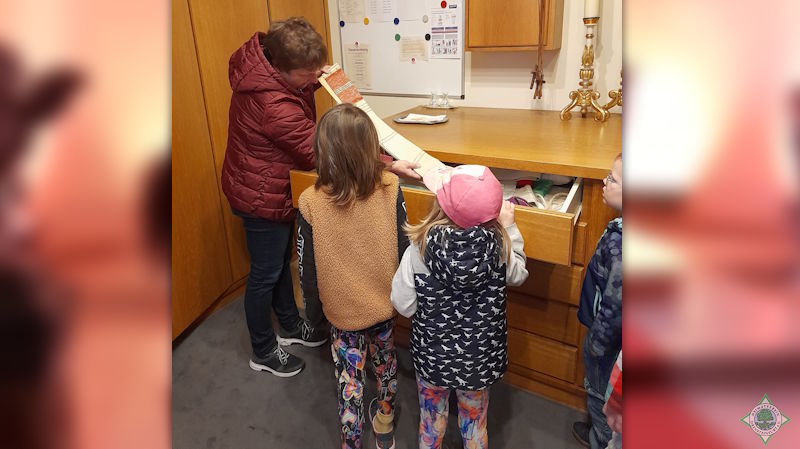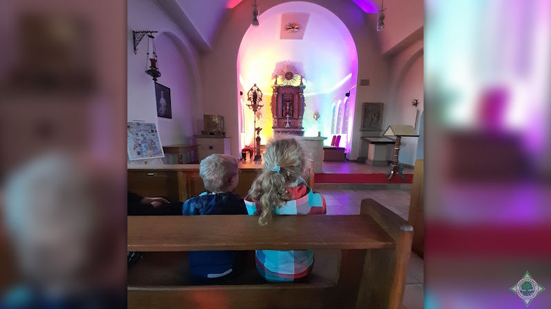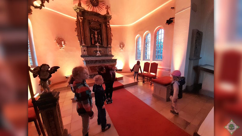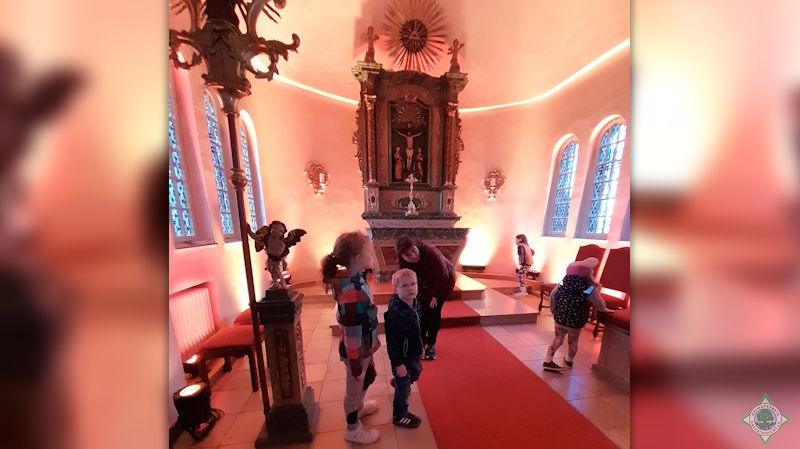 Am 27.02.2026 besuchten die "Regenbogen Kids" in ihrer Gruppenstunde die Lichterkapelle (Herz-Jesus) in Borbein. Die Küsterin gestaltete eine altersgerechte Führung, die auch Bereiche wie die Sakristei und die Empore mit der Orgel umfasste. Die Kinder zeigten sich begeistert und folgten den Ausführungen mit großem Interesse. Abschließend trugen sich alle Teilnehmer in das Gästebuch der Kapelle ein.