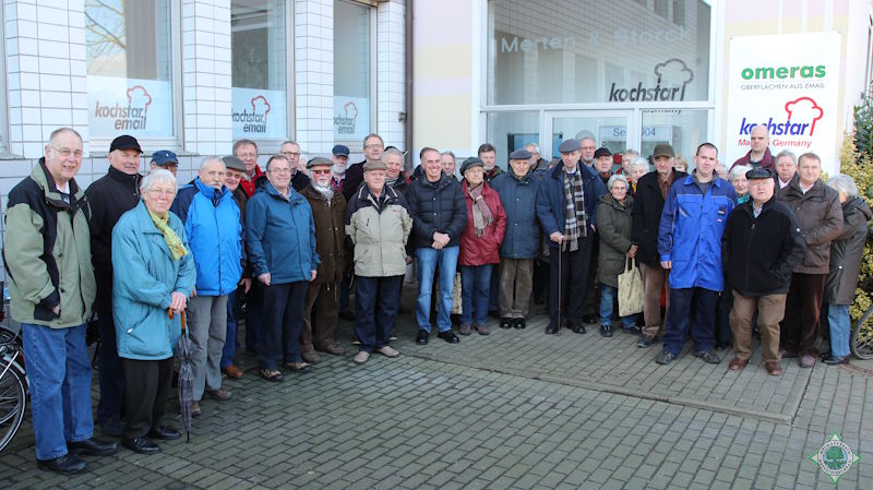 Fortschrittskurs des Unternehmens, das auf einem schwierigen Markt bestehen muss. Billigprodukte aus Asien überschwemmen heutzutage den Haushaltswarenmarkt. Doch selbst in China und Korea wissen Verbraucher die Qualität und Langlebigkeit der Produkte, mit dem Attribut „made in Germany“ zu schätzen, so dass „kochstar“- Waren in diesen Regionen einen guten Absatz haben. Der Exportanteil liegt bei etwa 45 Prozent, wovon 2/3 in Europa und 1/3 in Asien und USA abgesetzt werden. Der Prokurist Hans-Günther Heinze und der technische Betriebsleiter Benedikt Schlüter führten die Besucher durch das Werk, wo sie Einblicke in alle Produktionsbereiche wie Rohfertigung, Reinigen, Emaillieren, Brennen, Komplettieren sowie Verpackung und Versand bekamen und dazu ausführliche fachliche Erläuterungen erhielten.