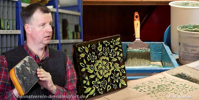 Bericht: Franz-Josef Naber - Am Freitag wurde von 30 Heimatfreunden die Blaudruckerei Kentrup in Nottuln besucht. Nach einem gemeinsamen Kaffeetrinken in der urgemütlichen „Stiftsschänke Kenturp Bläu“ fand unter der Führung des Inhabers der Blaudruckerei , Dirk Kentrup eine Führung durch die Manufaktur statt. Es wurde gezeigt, wie nach traditionellen Verfahren und nach den Regeln der alten Handwerkskunst die Produkte entstehen. Die Blaudruckerei Kentrup ist die älteste Blaudruckerei in Nordrhein-Westfalen. Besonders beeindruckt waren die Besucher von den fast 200 Jahre alten Druckstöcken. Herr Kentrup wies darauf hin, dass die geheimen Farbrezepturen ausschließlich von Generation zu Generation weitergeben werden.