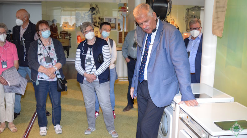 Bericht und Fotos: Armin Asbrand - Erinnerungen an Kindheitstage wurden wach als Thomas Huth von der Firma Miele die 30 Frauen und Männer des Heimatvereines Drensteinfurt durch das hauseigene Museum führte. Huth erklärte, wie Bauernsohn Carl Miele, ein gelernter Maurer, ab 1900 erste Milchzentrifugen und Buttermaschinen in Herzebrock konstruierte und ans Landvolk verkaufte. Jahre später jubelten die Hausfrauen, die statt Kernseife und Muskelkraft einen ersten Waschautomaten für die große Wäsche einsetzen konnten.