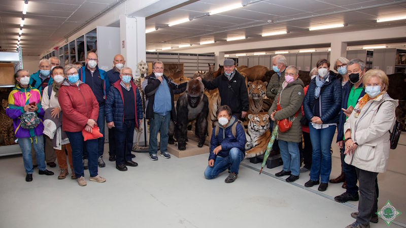 Auf drei Etagen lagern Exponate zur Geologie (Fossilien, Gesteine), Zoologie und der Botanik. Die Ammoniten aus grauer Vorzeit zum Beispiel sind tonnenschwer, die lebensecht wirkenden Wildtiere sind faszinierend und furchteinflößend zugleich. Der letzte Wolf des Münsterlandes aus Herbern gehört ebenso zur Sammlung wie ehemalige Zootiere, so auch der Tiger Rasputin, der 2016 im Münsteraner Zoo eine Pfleger getötet hat. „Allein über 650 000 Funde von Pflanzen und Pilzen und 1,5 Mio. Insekten aus der ganzen Welt haben wir eingelagert und zum Teil archiviert,“ erklärte Dr. Tenbergen. Die zoologische Sammlung umfasst etwa 15 000 Säugetiere und knapp 30 000 präparierte Vögel.