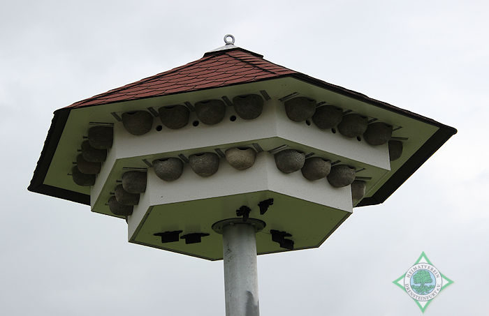 Die Pflege des Schwalbenhauses und die einmal im Jahr notwendige Säuberung übernimmt die Gruppe Natur des Heimatvereins. Die Naturschutzstation Haus Heidhorn des Nabu wird das Projekt in der nächsten Zeit begleiten. Ermöglicht wurde das 10 000-Euro-Projekt durch die Sponsoren AHW Ingenieure GmbH, Sparkasse und Volksbank sowie die Umweltstiftung Allianz durch Klaus Hemsing und eine Privatspende. 5 000 Euro kamen so zusammen, die restlichen 5 000 Euro stammen aus der Kasse des Heimatvereins. Für das Fundament, das von Familie Weber, Jürgen Schemmelmann und Hans Tilly gegossen wurde, stellte Thomas Pollmüller die Maschinen zur Verfügung.