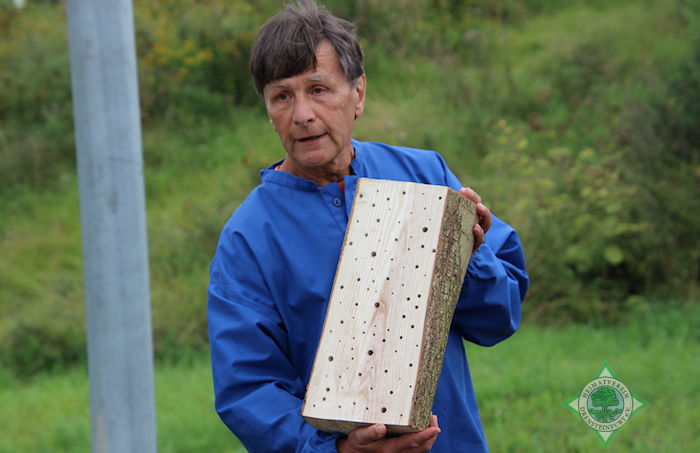 Doch nicht nur die Mehlschwalben finden hier ein Zuhause, im Innern des Hauses befinden sich 18 Kästen für Blaumeisen, Kohlmeisen und Sperlinge, dazu sechs Fledermauskästen. Die Idee für das Multi-Kulti-Vogelhotel hatte der Vorsitzende des Heimatvereins selber. „Ich habe es 2008 beim Heimatverein Füchtorf gesehen“, berichtet Franz-Josef Naber.