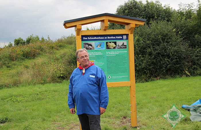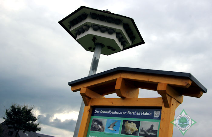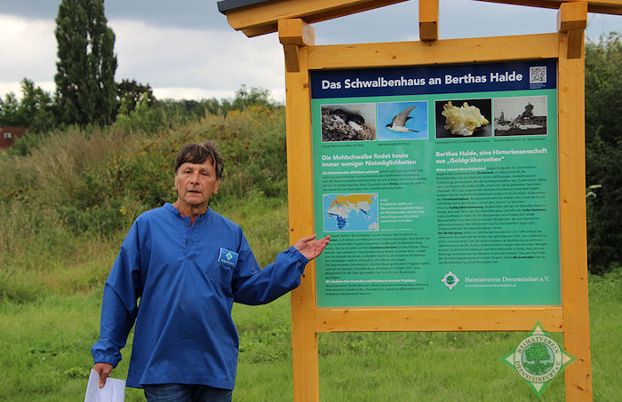 Dann galt es nur noch die Heimatfreunde zu überzeugen, Sponsoren zu suchen und eine geeignete Fläche zu finden. Voraussetzung für den Standort sei eine Schwalbenkolonie und die hatte sich im Neubaugebiet am Berthaschacht angesiedelt.