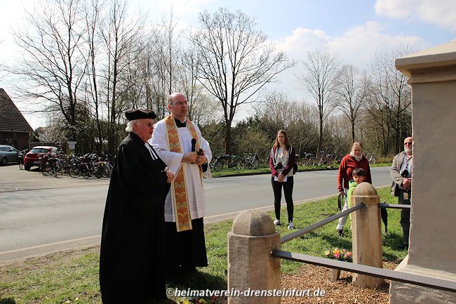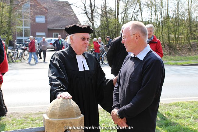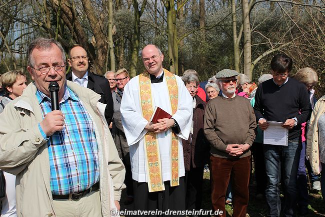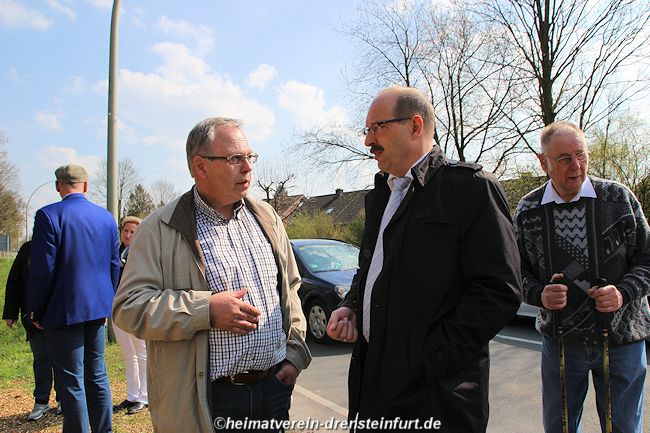 Auf diesem Tag haben sich alle Heimatfreunde gefreut Walter Gröne (ehemaliger evangelische Pfarrer) und zweiter Vorsitzende des Heimatvereins, sowie der Katholische Pastor weihten und segneten das Wegekreuz an der Konrad-Adenauer Straße. Bei herrlichen Wetter mit strahlenden Sonnenschein waren Ca. 130 Heimatfreunde unteranderen auch Gäste aus Politik und Kirche zur feierlichen Einweihung des Wegekreuzes gekommen. Westfälische Nachrichten - PDF Ι Westfälischer Anzeiger - PDF
