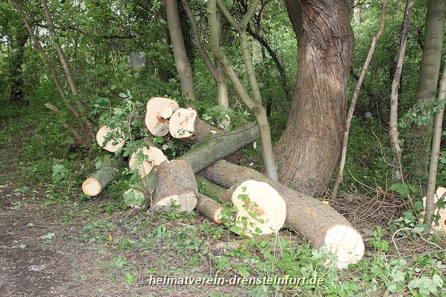 Die Überbleibsel der Baumstämme wurden abgefräst und zerkleinert.