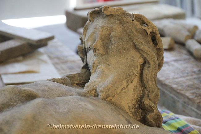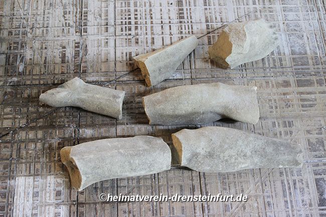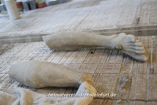 Steinmetz Jens Herzog hat mit der Restaurierung des Korpus begonnen. Er hat die zerlegten Stücke des Korpus liebevoll zusammen gefügt und entsprechend angepasst.